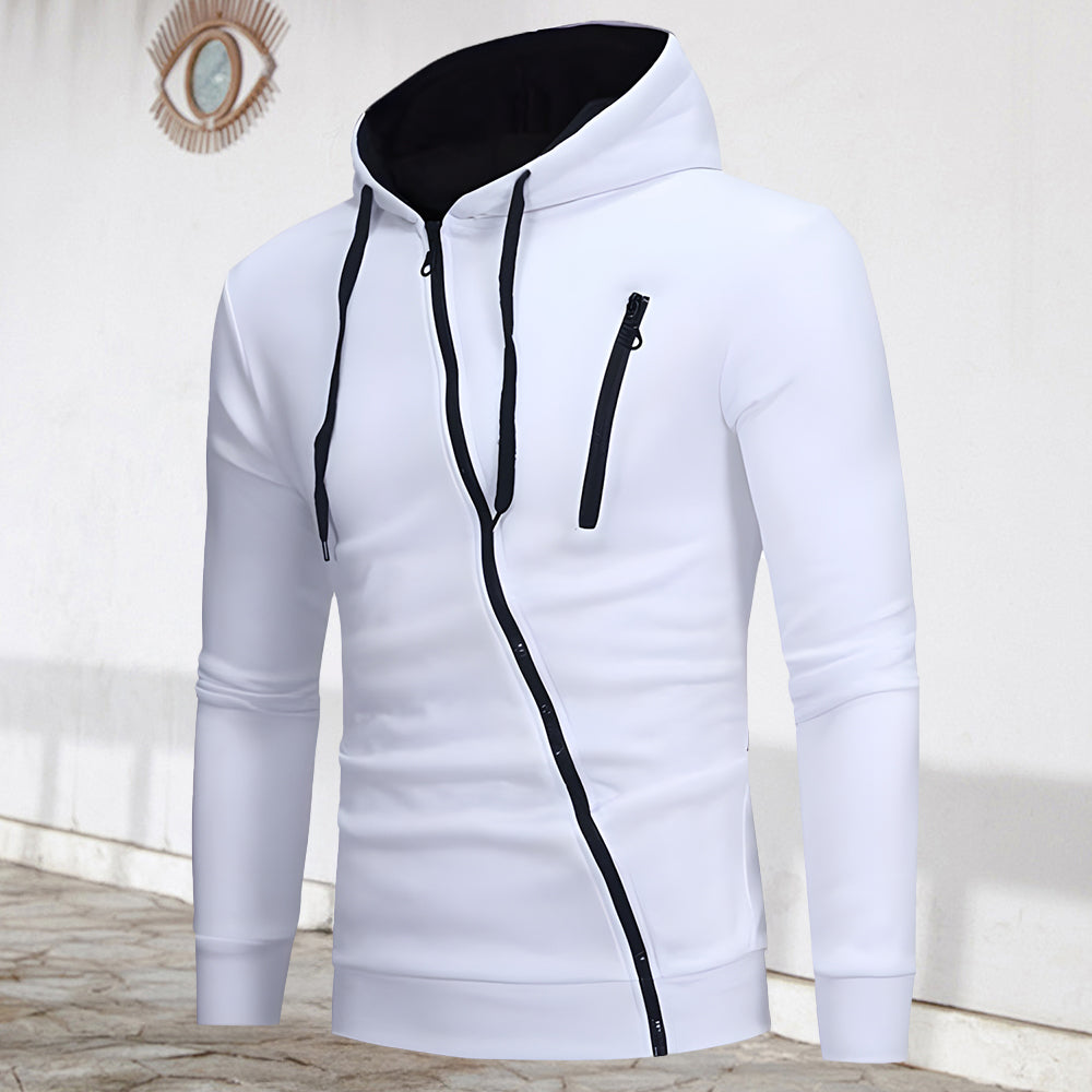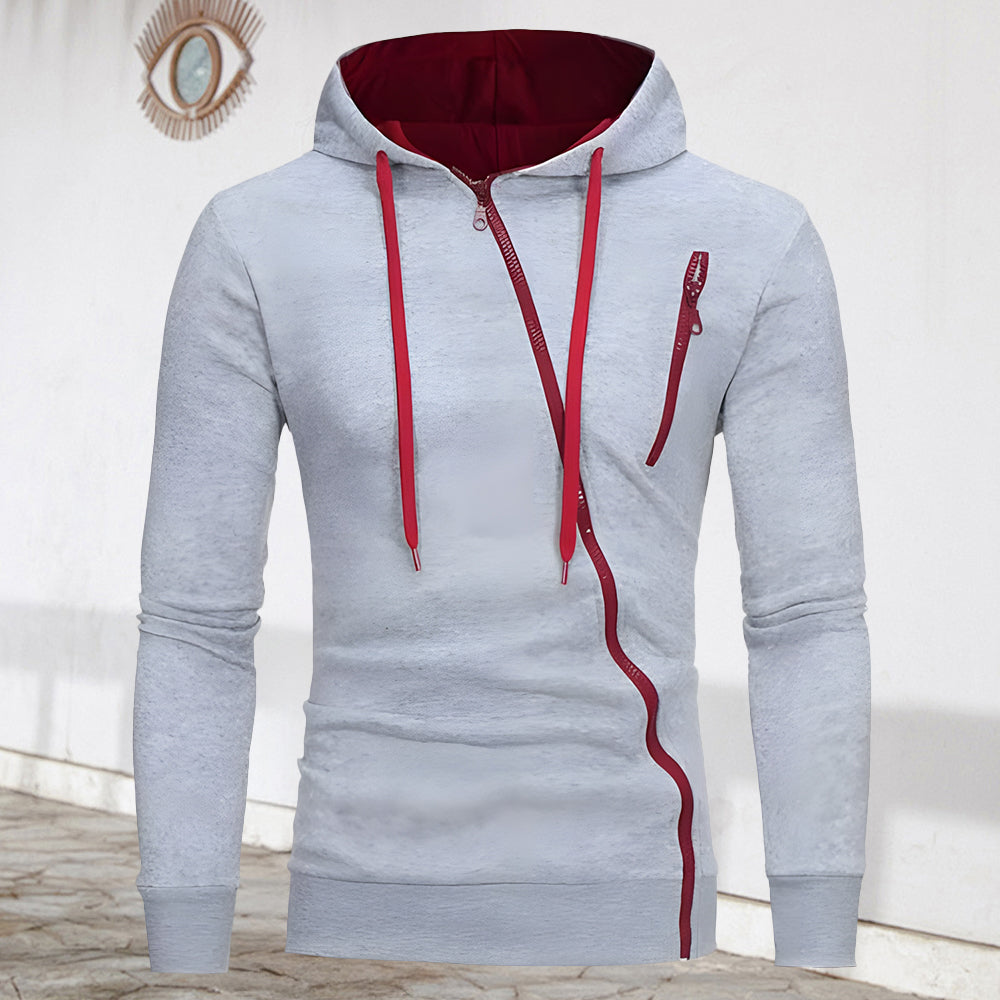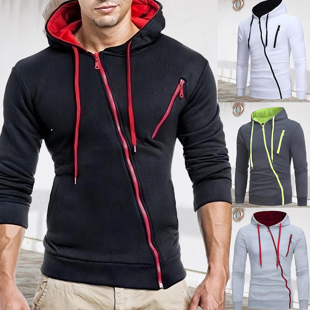 Neues Sportliches, Lässiges Herren-Sweatshirt Mit Kapuze Und Langen ärmeln Und Diagonalem Reißverschluss