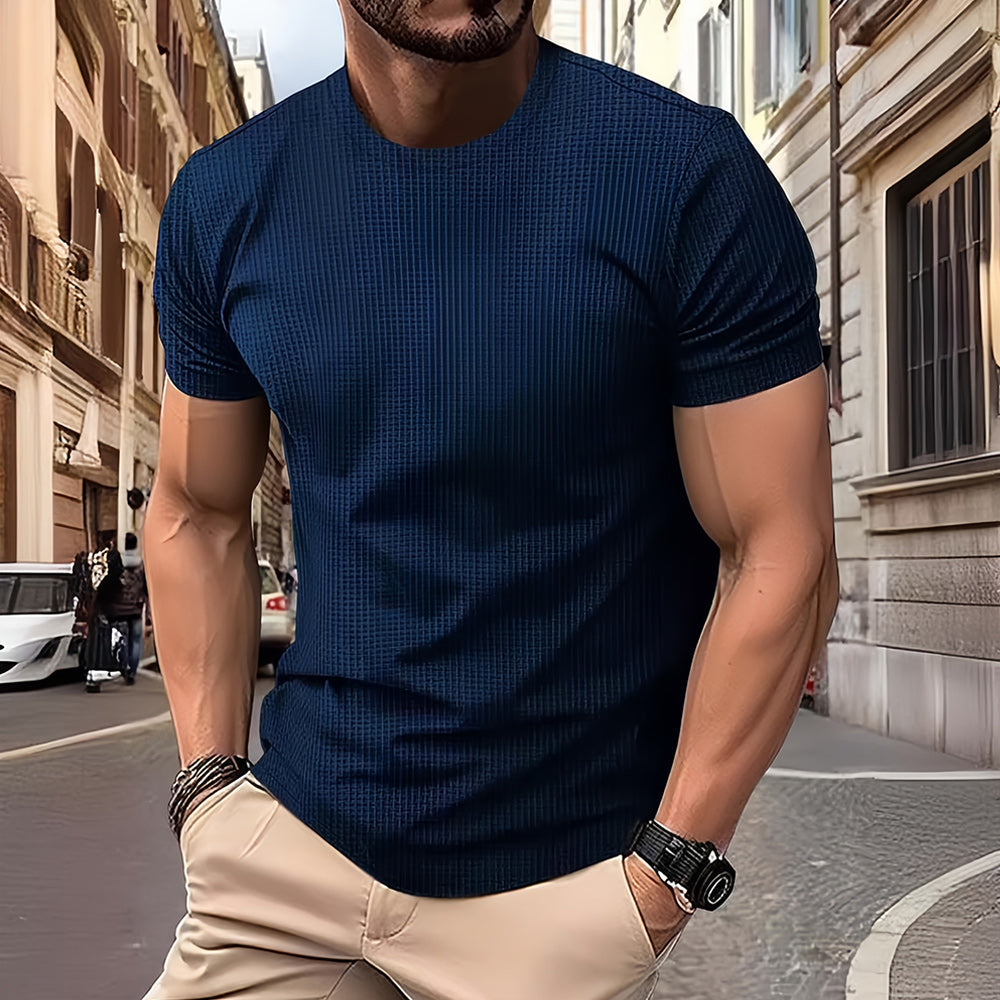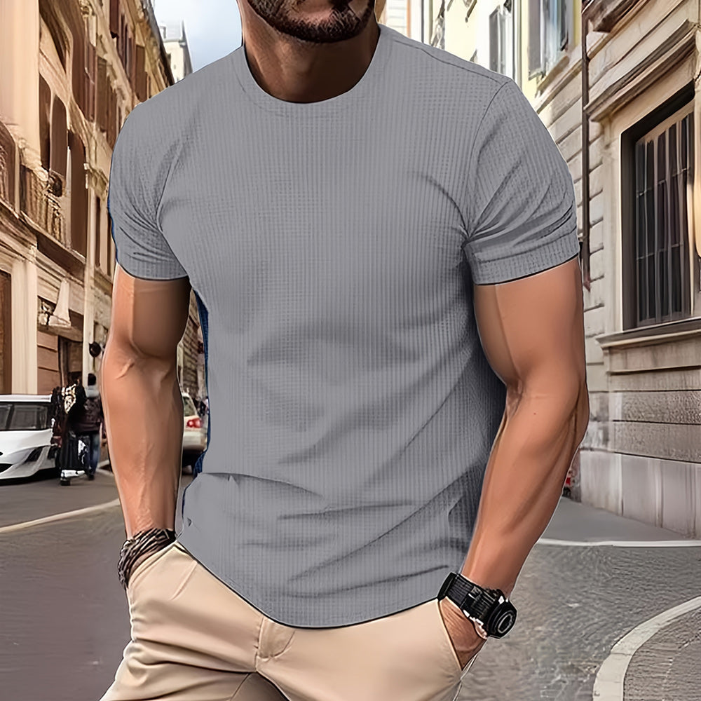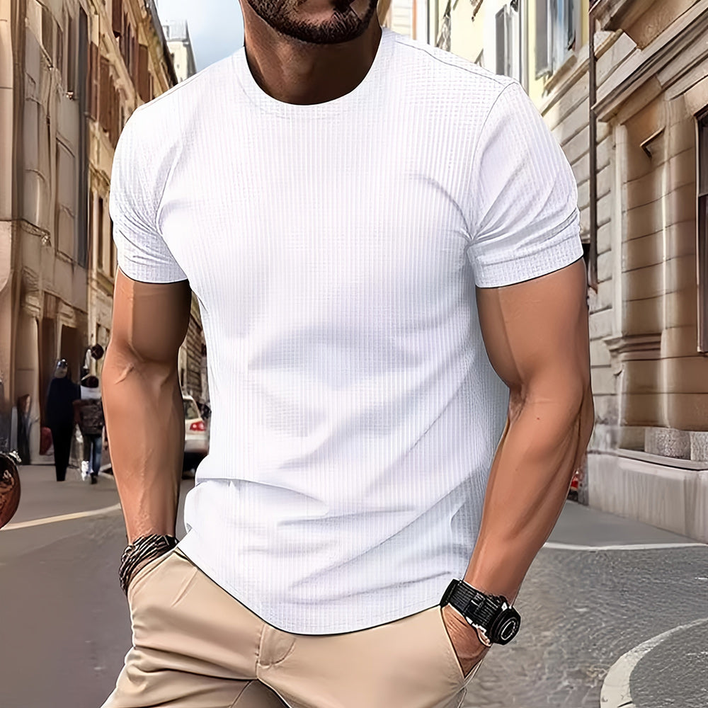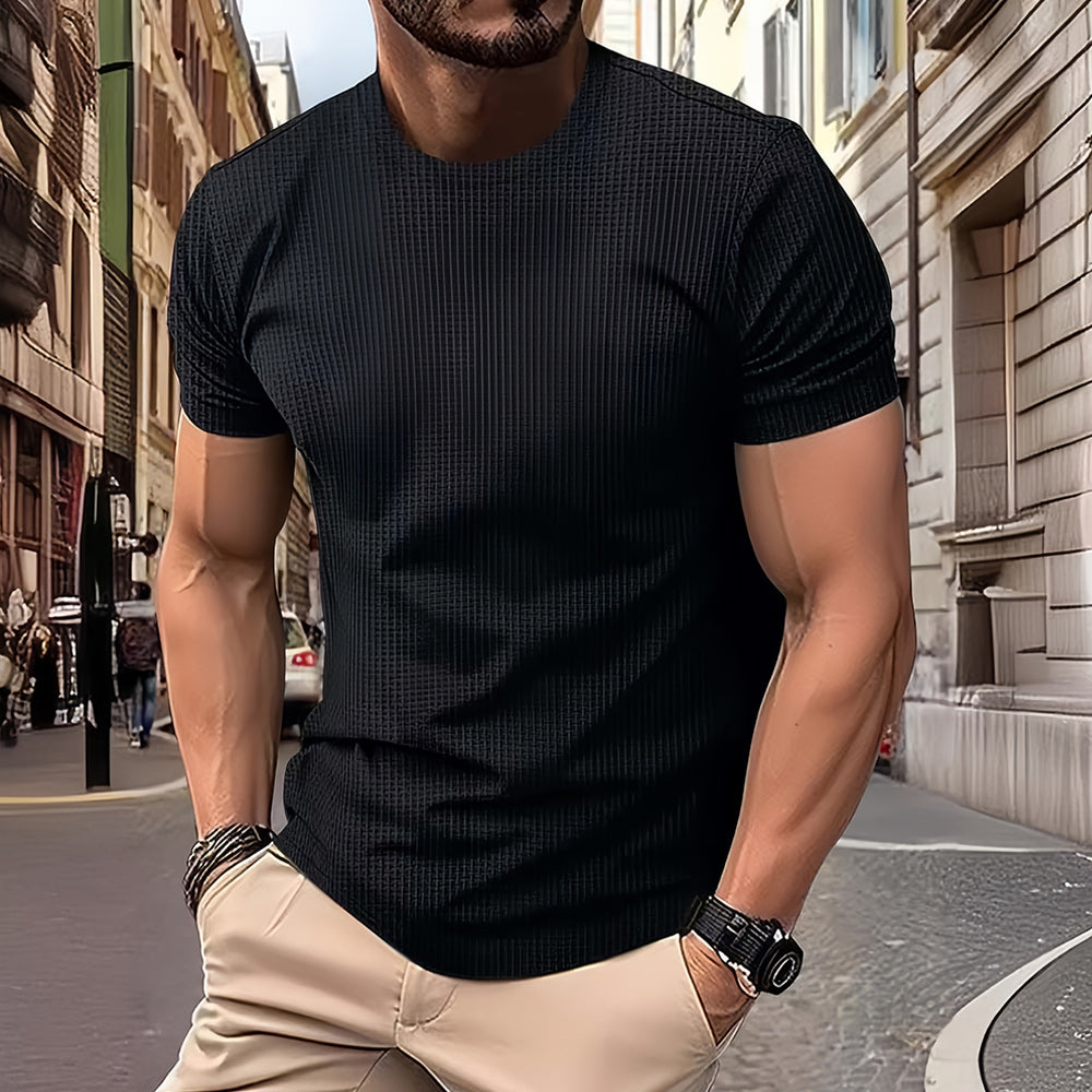 Sportliches Rundhals-T-Shirt aus Eisseide und Jacquard für Herren für den Sommer