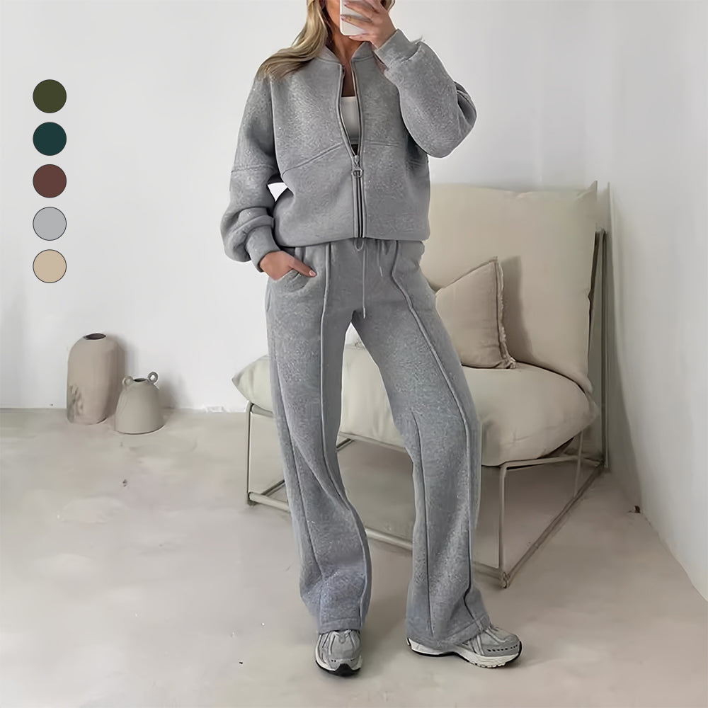 - 1 x Modisches lässiges einfarbiges Langarm-Sweatshirt mit Reißverschluss + Hose