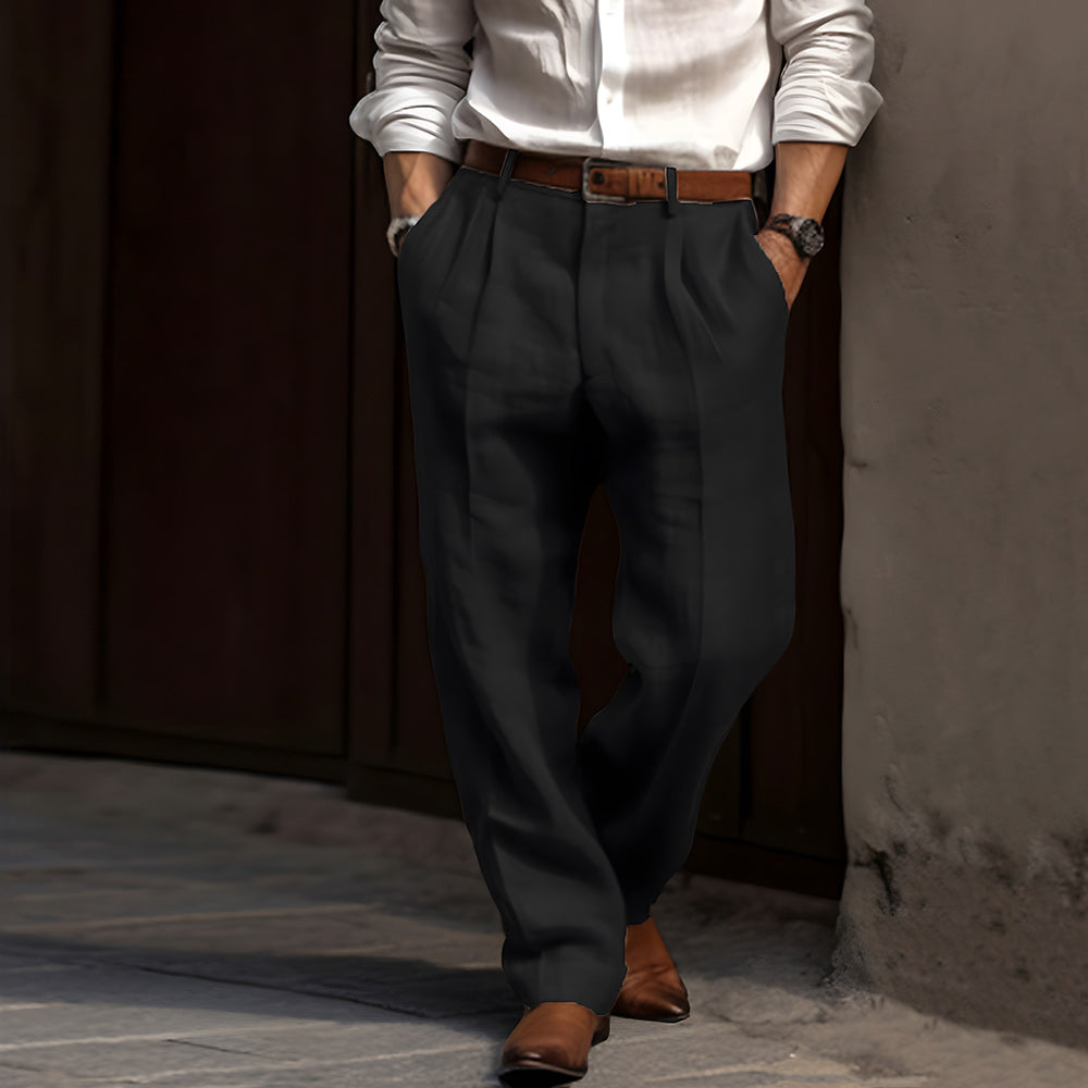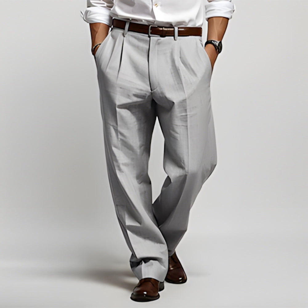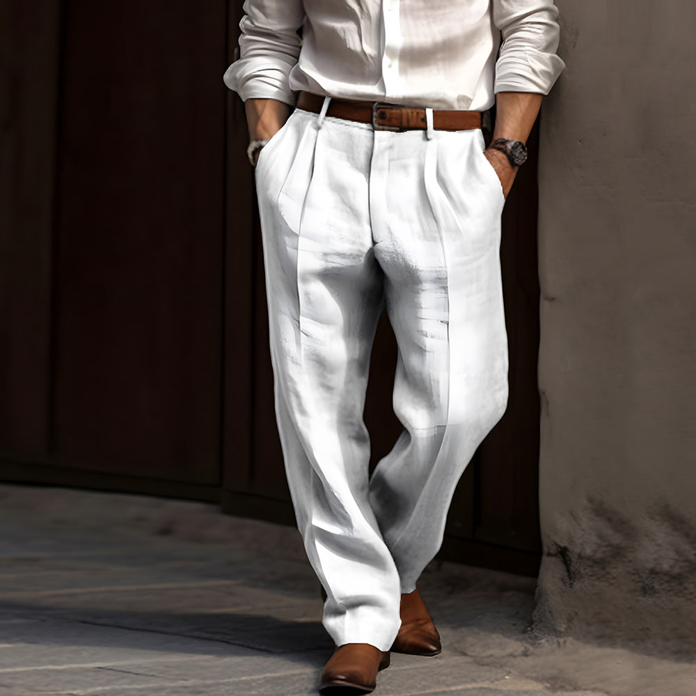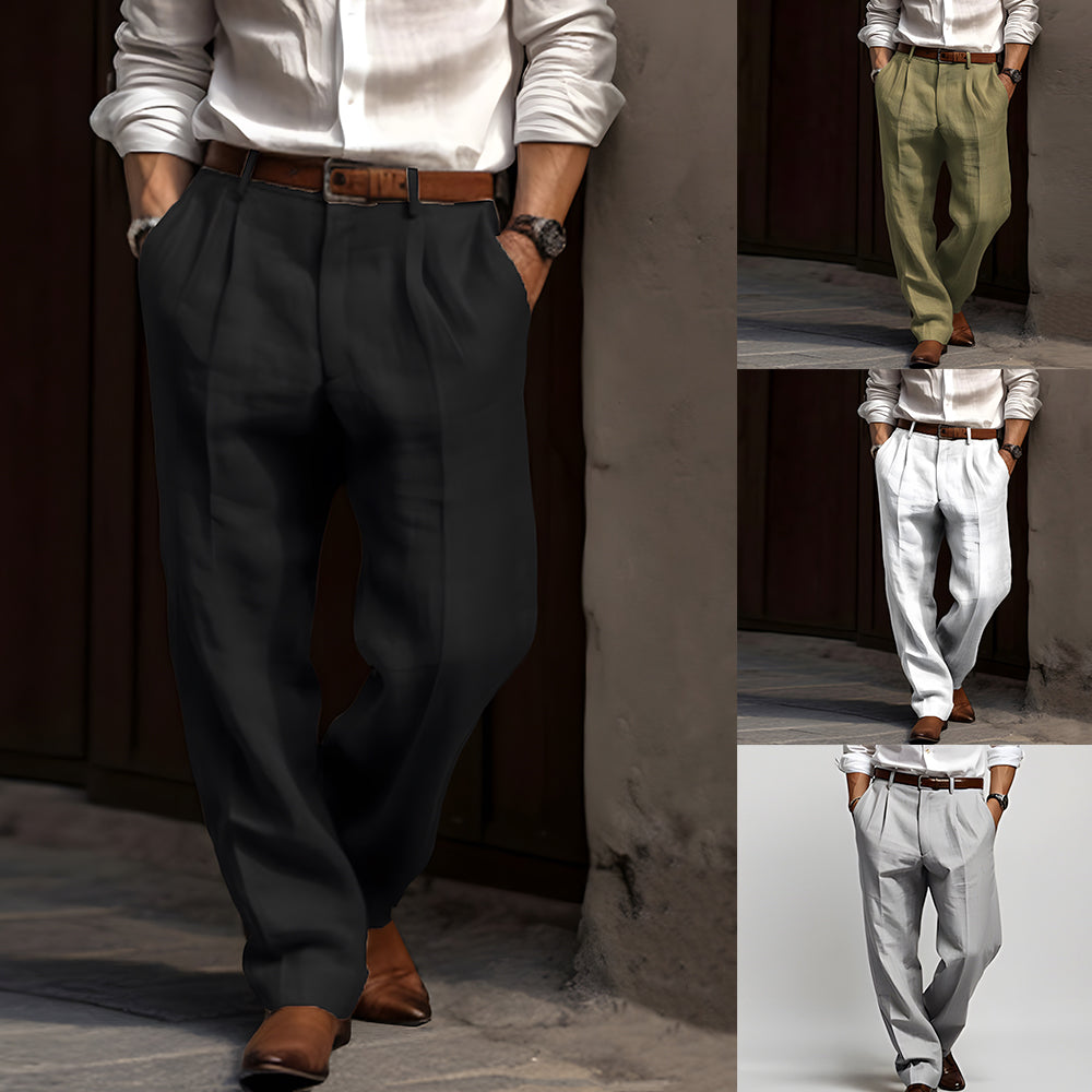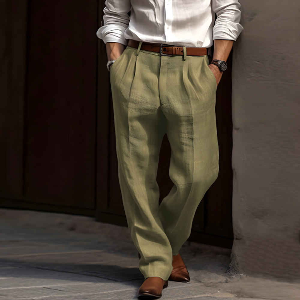 - 1 x Einfarbige Herrenhose aus Leinen mit doppelter Bundfalte und geradem Bein