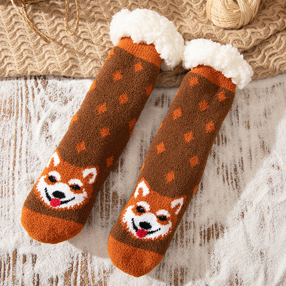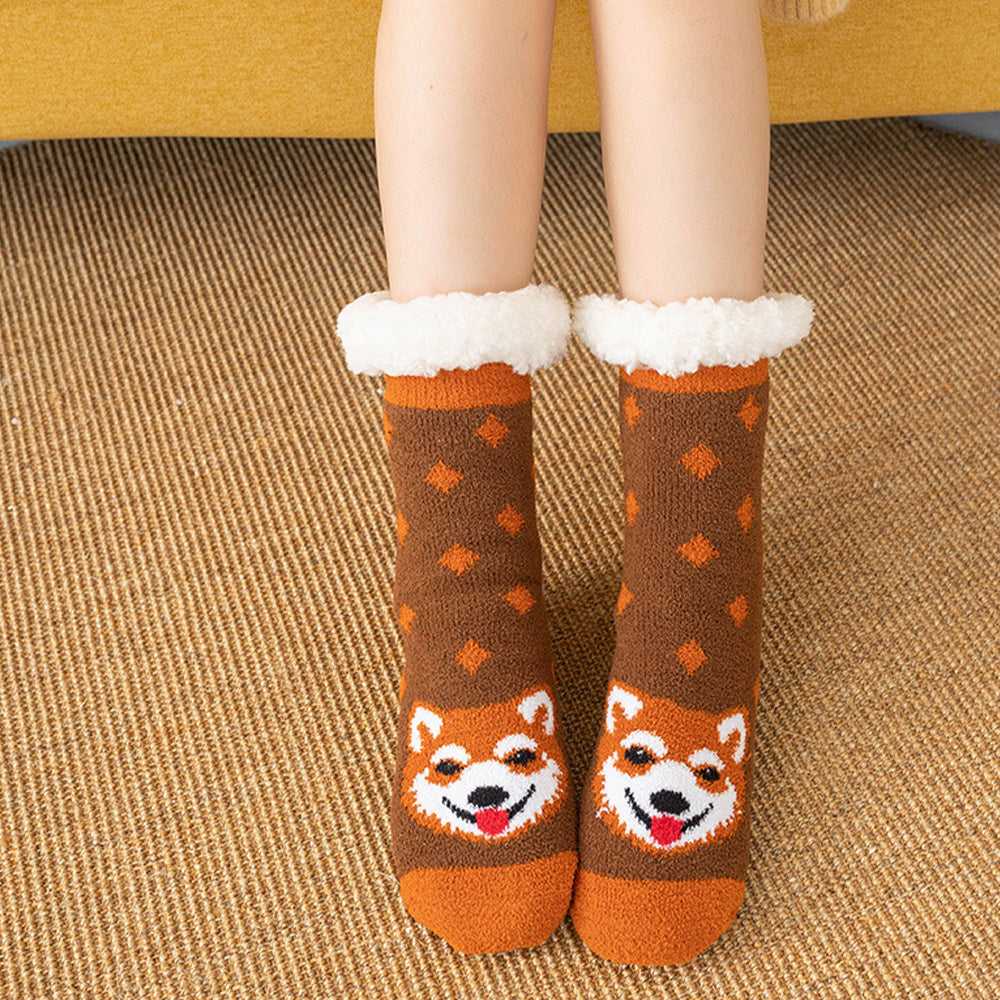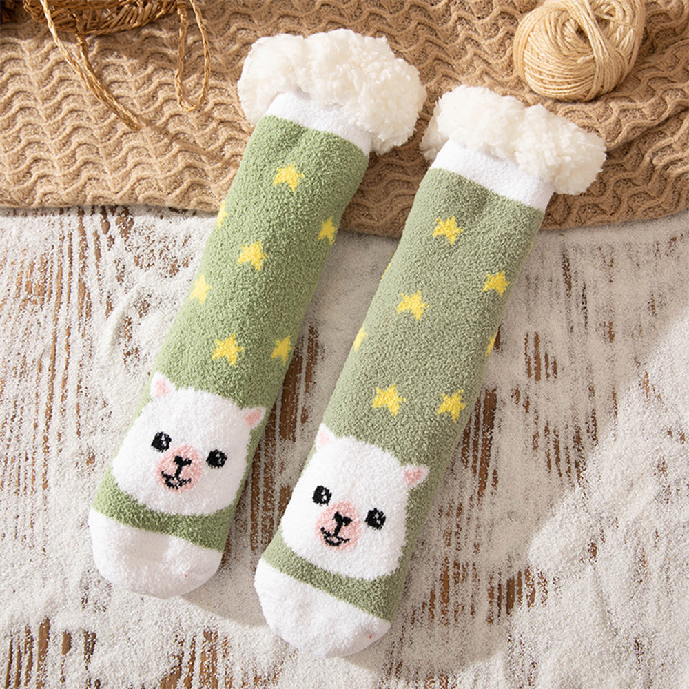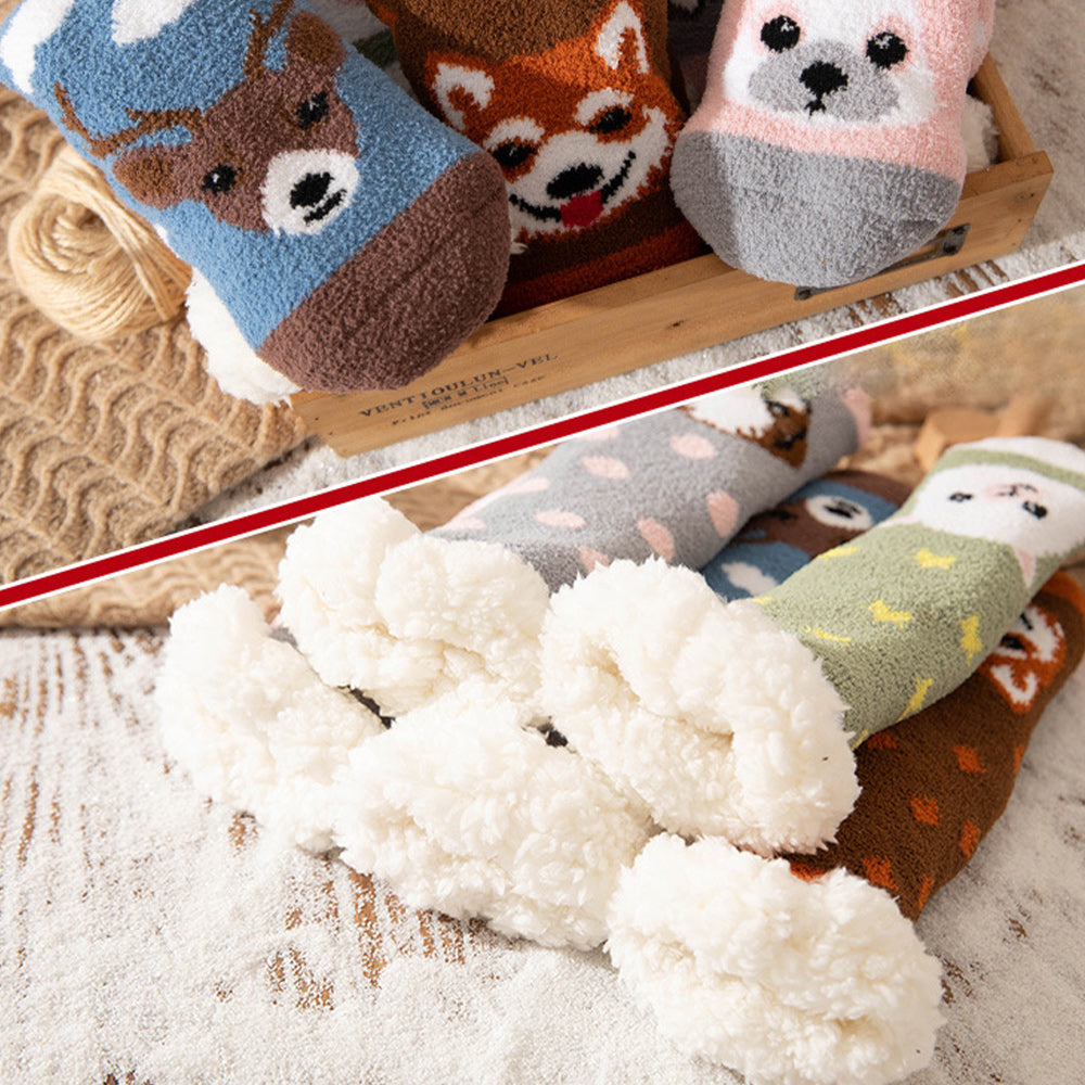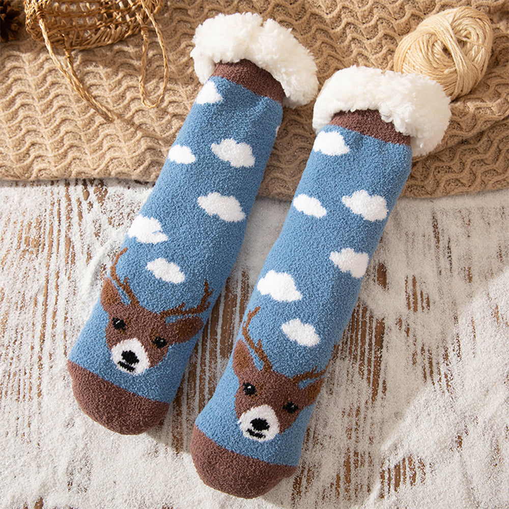 - 1 x Winter-Weihnachts-Cartoon-Tier-Warme, Verdickte Korallensamt-Bodensocken