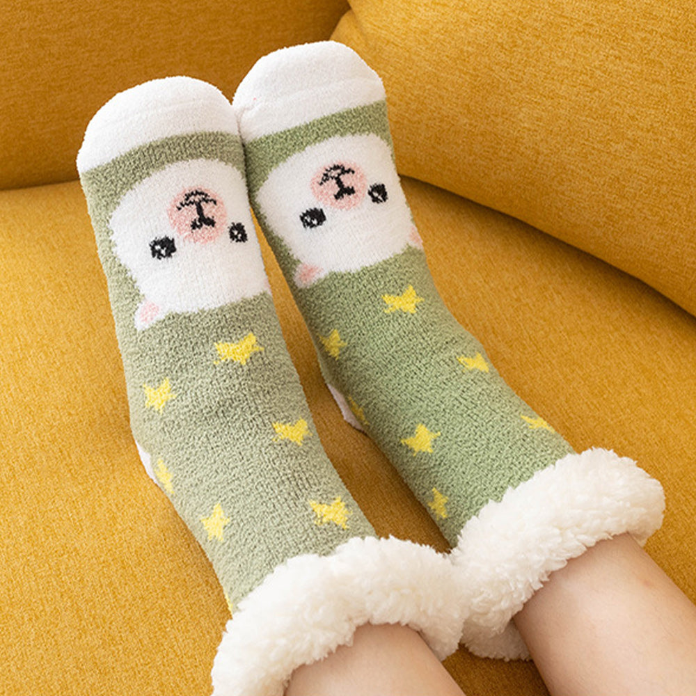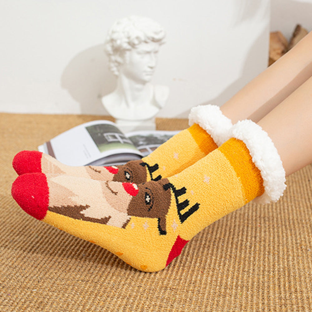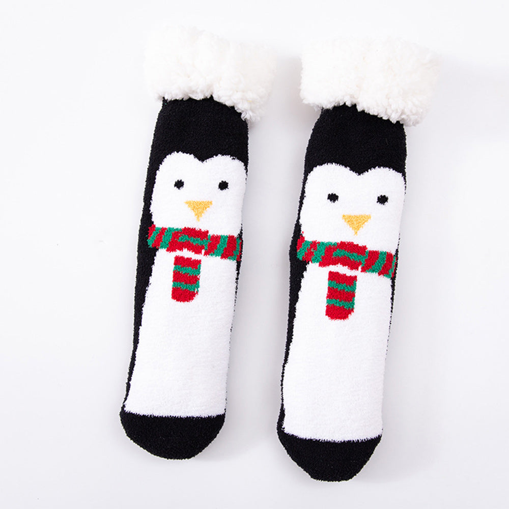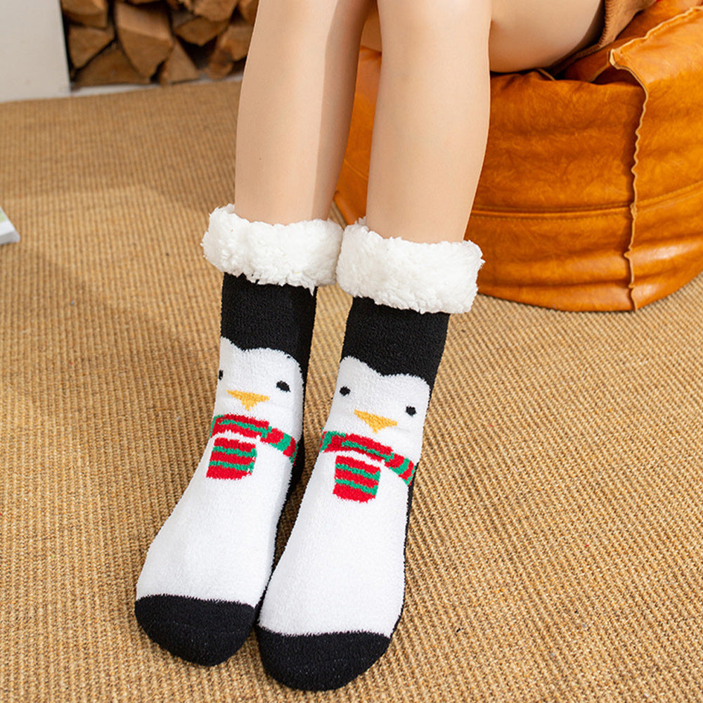 - 1 x Winter-Weihnachts-Cartoon-Tier-Warme, Verdickte Korallensamt-Bodensocken