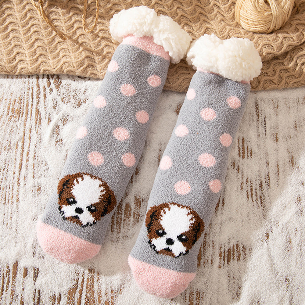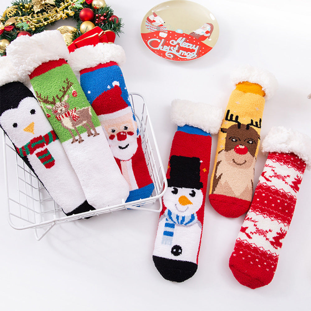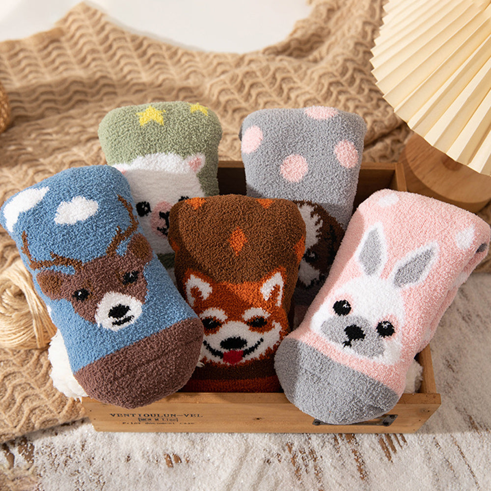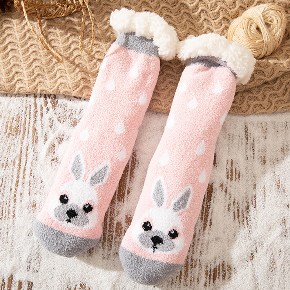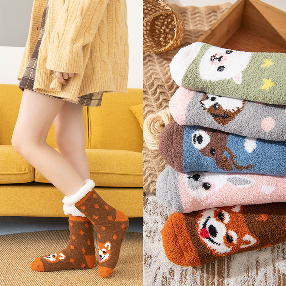 - 1 x Winter-Weihnachts-Cartoon-Tier-Warme, Verdickte Korallensamt-Bodensocken