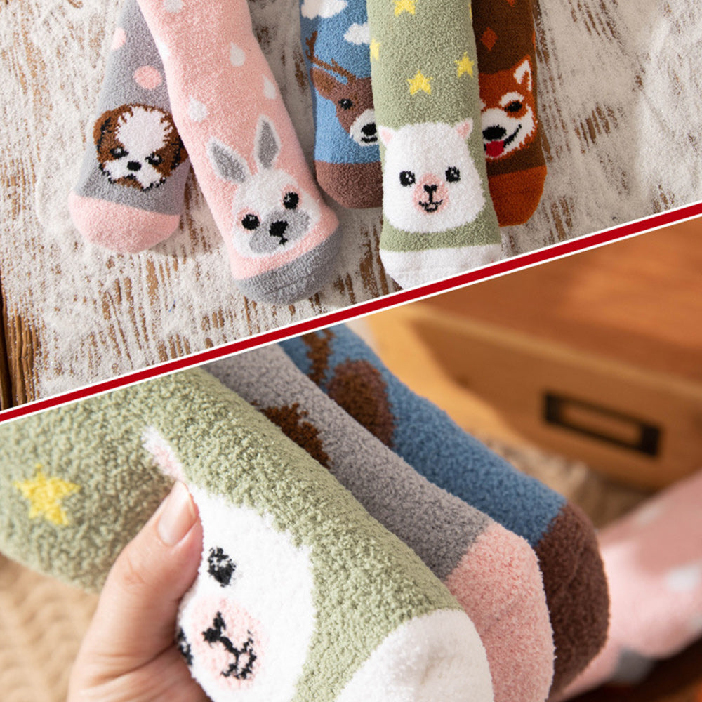 Winter-Weihnachts-Cartoon-Tier-Warme, Verdickte Korallensamt-Bodensocken