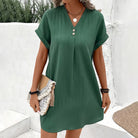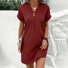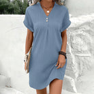 - 1 x Elegantes Damenkleid mit einfarbigen Knöpfen und V-Ausschnitt